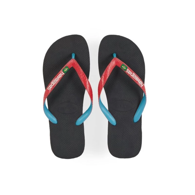 Les Tongs pour Homme Brasil Mix Black/Red Ruby de la marque Havaianas font place au bicolore tout en gardant le design unique et authentique des tongs brésiliennes !
